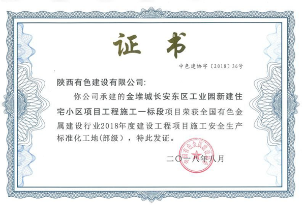 近日,從中國有色金屬建設(shè)協(xié)會傳來喜訊,公司金堆城長安東區(qū)項(xiàng)目榮獲“全國有色金屬建設(shè)行業(yè)2018年度建設(shè)工程項(xiàng)目施工安全生產(chǎn)標(biāo)準(zhǔn)化工地”稱號,這是公司獲得的首個(gè)中國有色金屬行業(yè)部級安全生產(chǎn)標(biāo)準(zhǔn)化工地,也是該項(xiàng)目繼獲得西安市航天基地2017年度“安全生產(chǎn)工作先進(jìn)單位”后又一項(xiàng)安全管理工作殊榮。