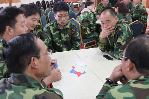 本次拓展訓練有幾個鮮明的特點。首先,參加拓展訓練的成員均為公司中層以上領導崗位人員,他們溝通協(xié)調能力強,團隊相對穩(wěn)定,經(jīng)過多年的工作配合,默契程度較高;其次,在結構層次上主要是以公司和生產(chǎn)單位的負責人為主,參與人員遍布公司各個核心管理崗位,他們位居要職,長期緊張工作,屬于思維可能陷入某種慣性模式的管理者。再次,參加培訓人員的生活經(jīng)驗相對豐富,社會閱歷較多,且大部分領導人在平日的工作中屬于決策型的角色,目光敏銳,反應也迅速、準確。