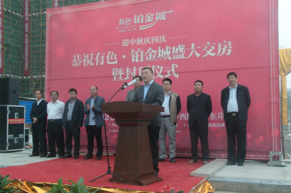 9月30日,由有色置業(yè)開發(fā)、有色陜建承建的有色鉑金城迎來(lái)了34、35、43#樓交房暨33、44#樓盛大封頂儀式。戶縣濱河新區(qū)管理辦公室、陜西有色建設(shè)有限公司、陜西有色萬(wàn)通建材有限公司、陜西有色置業(yè)有限公司相關(guān)領(lǐng)導(dǎo),有色鉑金城各參建單位及新老客戶蒞臨會(huì)場(chǎng),共襄盛舉,活動(dòng)現(xiàn)場(chǎng)禮炮齊鳴,鑼鼓喧天,氣氛熱烈濃郁。
