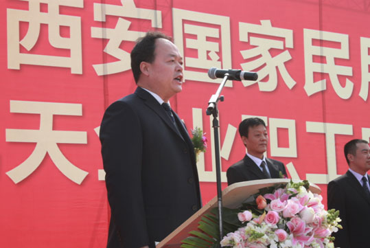 該工程總承包單位陜西有色建設(shè)有限公司董事長劉俊青在儀式上講話。他鄭重承諾,公司將把該工程作為公司的重點信譽工程,嚴(yán)格按照圖紙設(shè)計要求組織施工,選派公司精干團隊,確保工程質(zhì)量、工期和施工安全,保質(zhì)保量完成各項施工任務(wù),讓社會滿意、讓建設(shè)單位滿意、讓開發(fā)商滿意。最后,由西安國家民用航天產(chǎn)業(yè)基地管委會副主任李巖宣布項目奠基開工,并與參加儀式的諸位領(lǐng)導(dǎo)為項目奠基培土。